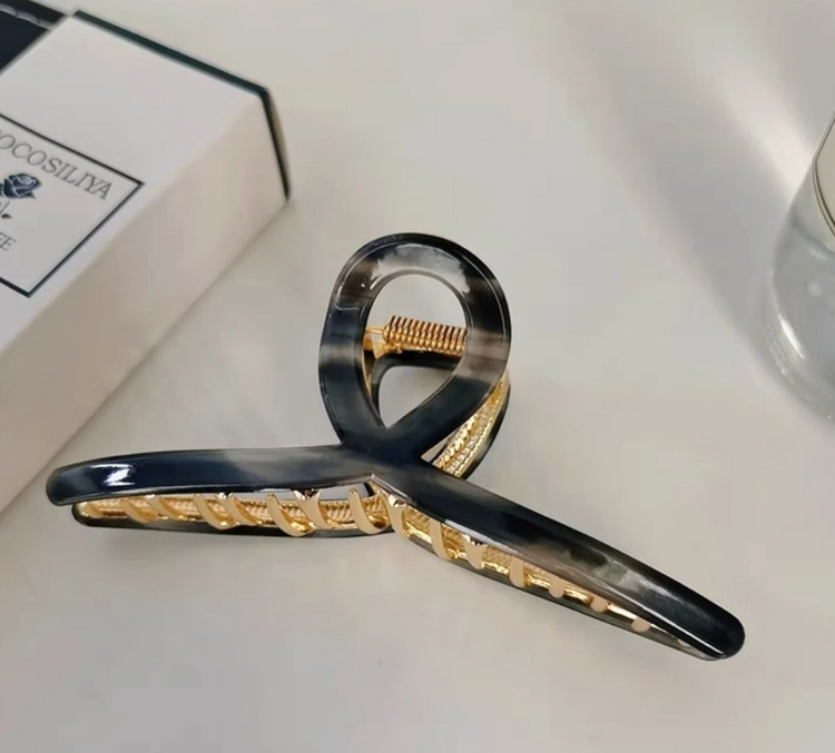 Made from an eco-friendly cellulose acetate material, these metal hair claw clips feature an elegant gold accent and unique geometric design. Strong enough for every day and chic enough for special occasions.